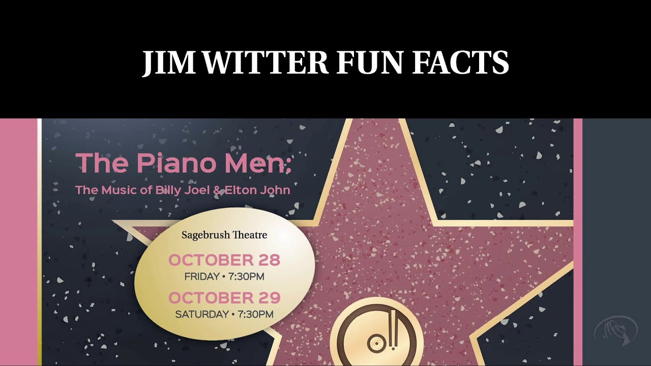 We’ve put together some Fun Facts about Jim Witter, who will be joining us to pay homage to two of the greatest rock ‘n roll pianists of our time when we present The Piano Men: The Music of Billy Joel & Elton John on October 28 & 29 in Sagebrush Theatre.