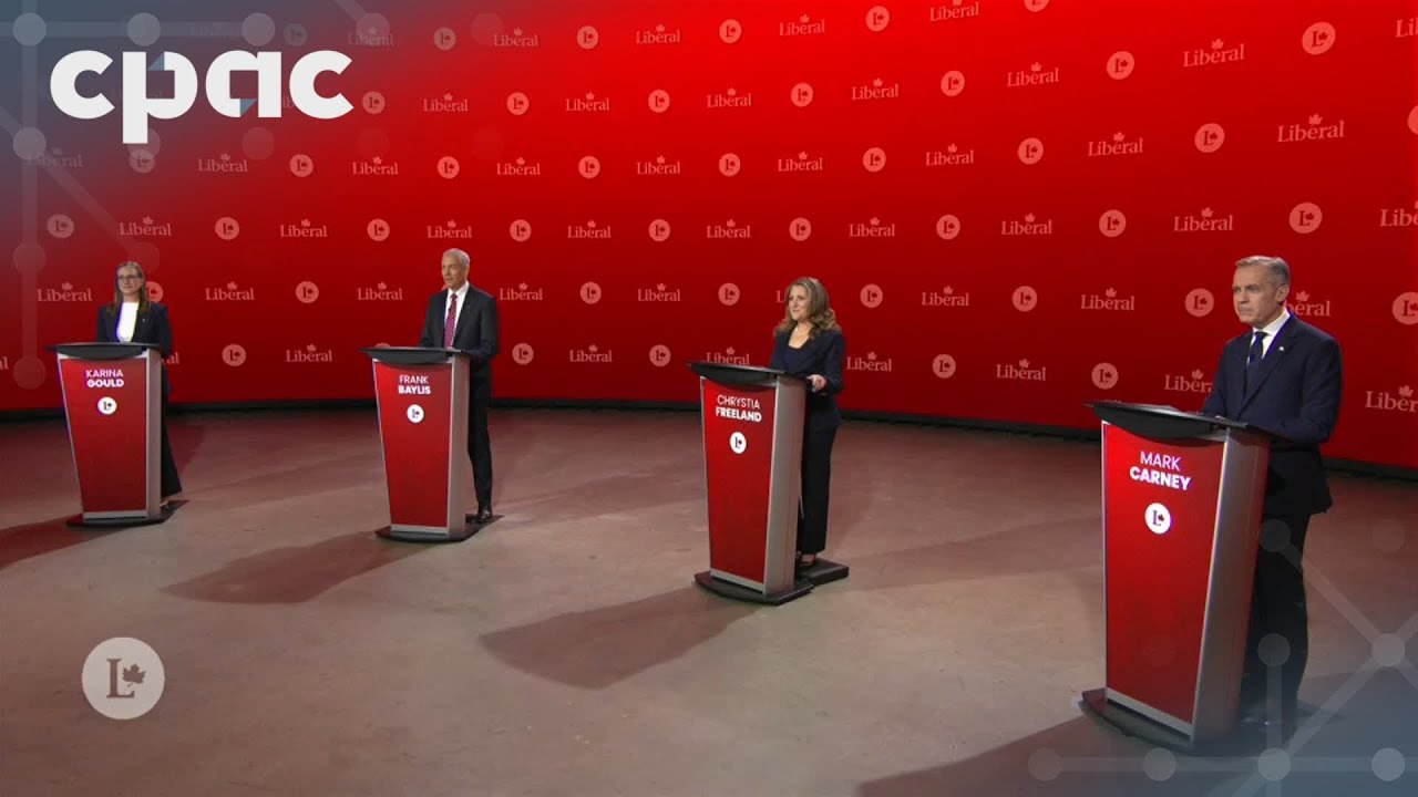 Liberal Party of Canada leadership candidates Frank Baylis, Mark Carney, Chrystia Freeland, and Karina Gould take part in an English-language debate in Montreal. The debate is organized by the Liberal party and is moderated by Hannah Thibedeau. The party will announce the results of its leadership election on March 9, 2025.