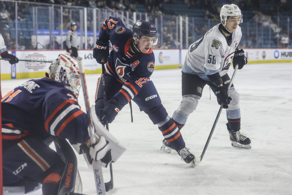 As the final minutes of the first period wound down, Tommy Lafrenière found the back of the net from a sharp angle, netting his 22nd goal of the season to restore Kamloops’ lead. However, with just one minute remaining in the period, Portland’s Diego Buttazzoni beat Edmonstone to send the game into the intermission tied 2-2.