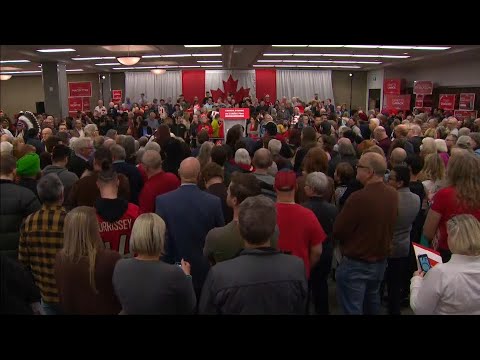 Liberal Party Leader Mark Carney addresses supporters at a campaign rally in Winnipeg, Manitoba.