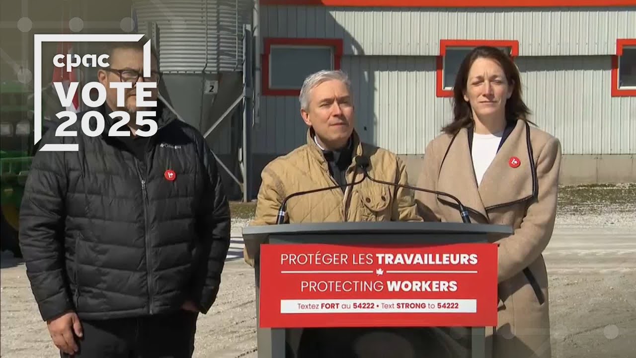 À Granby, au Québec, le candidat libéral François-Philippe Champagne (Saint-Maurice–Champlain) fait une annonce au nom du chef Mark Carney.