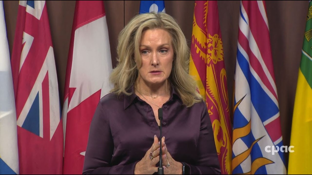 The Frontier Duty Free Association, a group representing Canada’s land border duty-free shops, holds a news conference in Ottawa to outline its priorities for the upcoming federal election. Speaking with reporters are Barbara Barrett and Philippe Bachand.