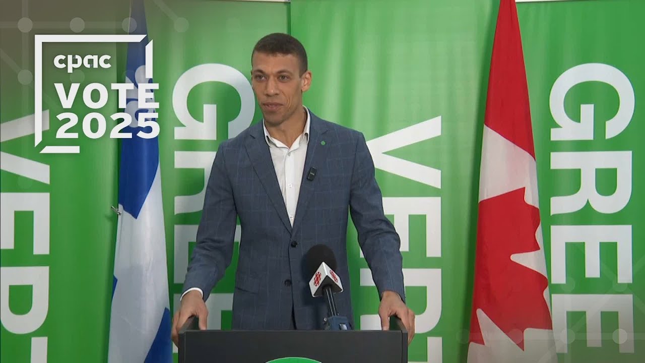Le cochef du Parti vert Jonathan Pedneault tient un point de presse à Montreal.