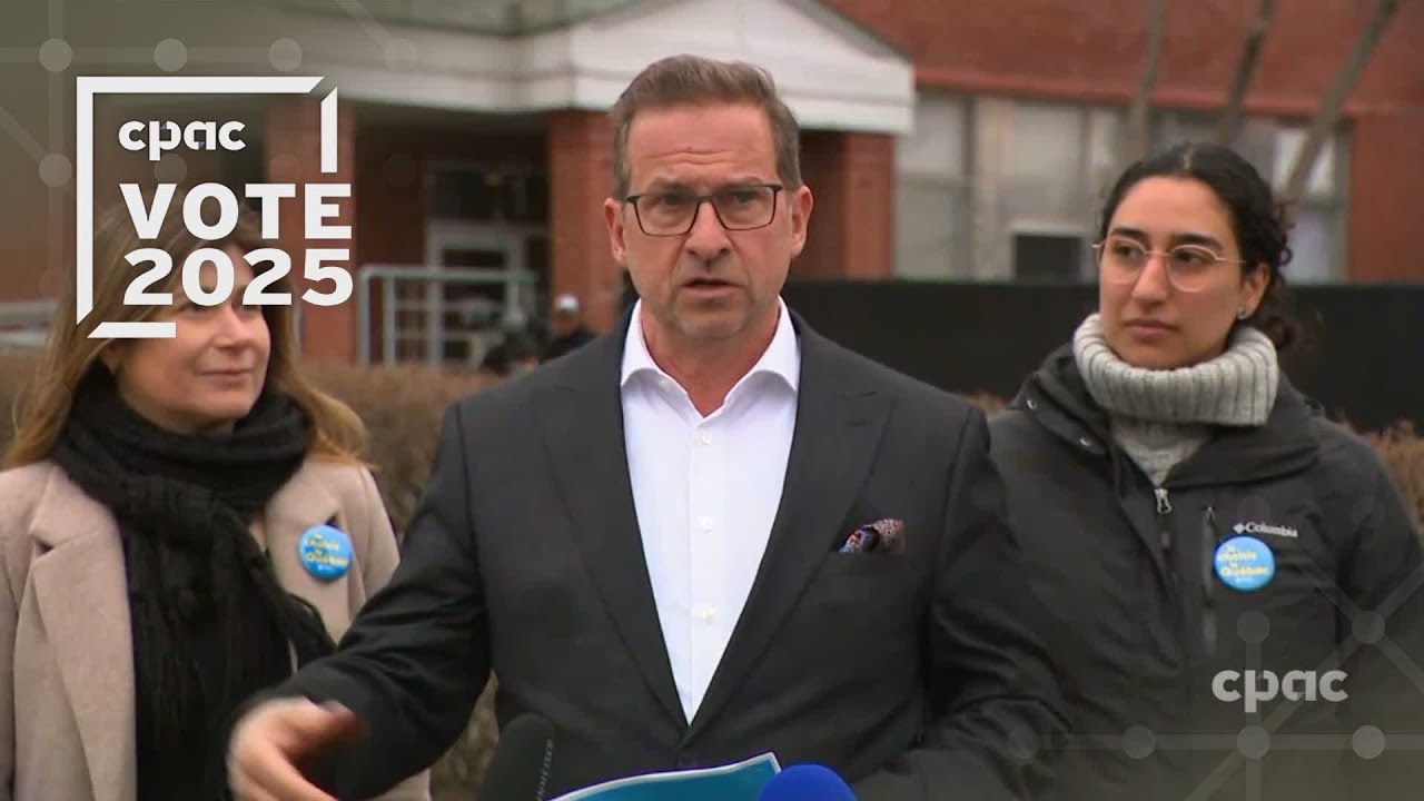 Yves-François Blanchet devant les médias à Longueuil , au Qué. – 18 avril 2025