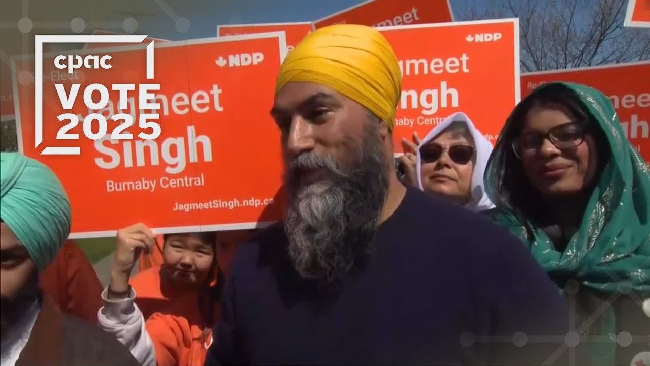 Jagmeet Singh speaks with reporters in Surrey, B.C. – April 19, 2025