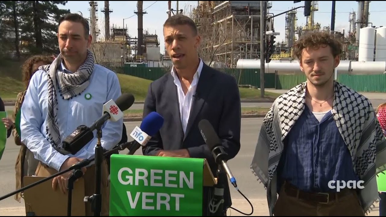 Le cochef du Parti vert Jonathan Pedneault tient un point de presse à Montréal.