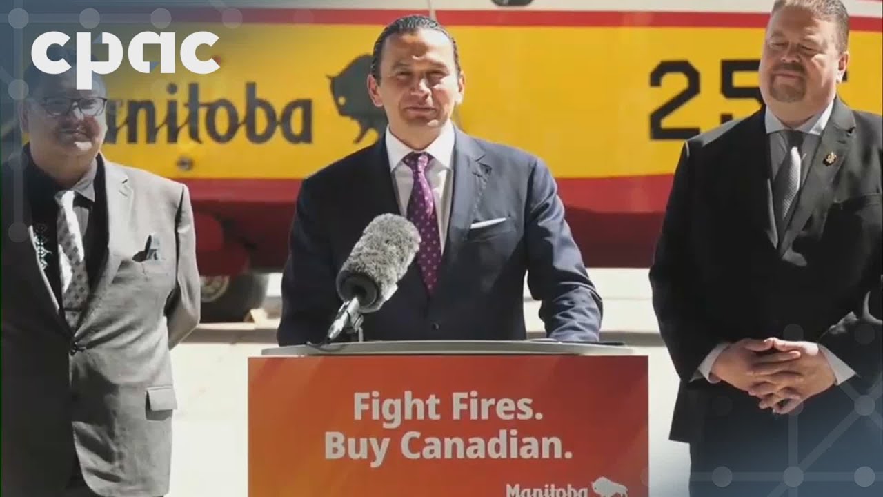 Manitoba Premier Wab Kinew holds a news conference in Winnipeg.