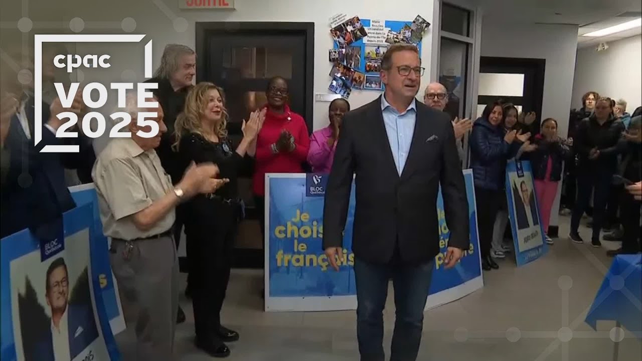 Le chef du Bloc Québécois Yves-François tient un événement dans le cadre de sa campagne électorale à Montréal.