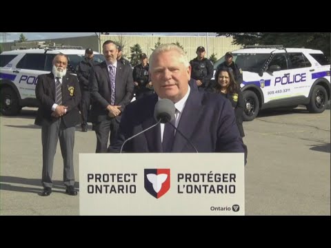 He is joined by Attorney General Doug Downey, Solicitor General Michael Kerzner, Associate Attorney General Michael Tibollo, and Associate Solicitor General for Auto Theft and Bail Reform Zee Hamid.
