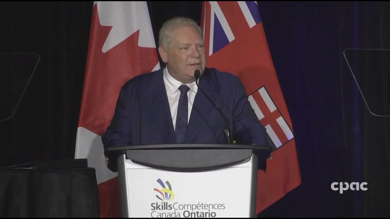 Ontario Premier Doug Ford provides remarks at the Skills Ontario Competition in Etobicoke.
