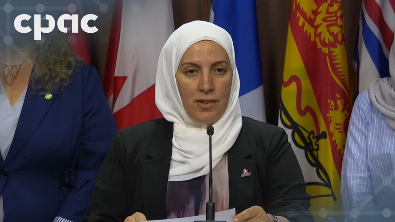 At a news conference in Ottawa, a group of humanitarian organizations raise concerns about a newly imposed aid mechanism in Gaza that is coordinated by Israel and the United States.