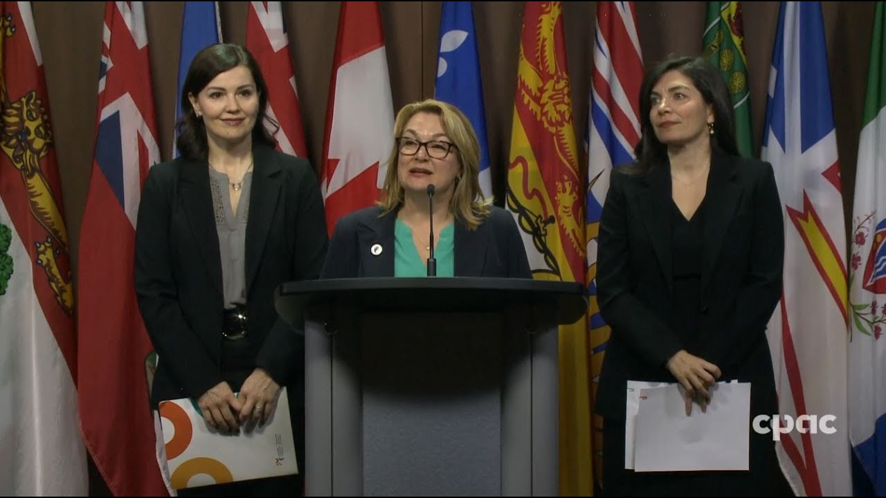 At a news conference in Ottawa, the Canadian Labour Congress’ Bea Bruske, the Canadian Chamber of Commerce’s Candace Laing, and the Federation of Canadian Municipalities’ Carole Saab discuss U.S. President Donald Trump’s decision to double tariffs on Canadian aluminum and steel.