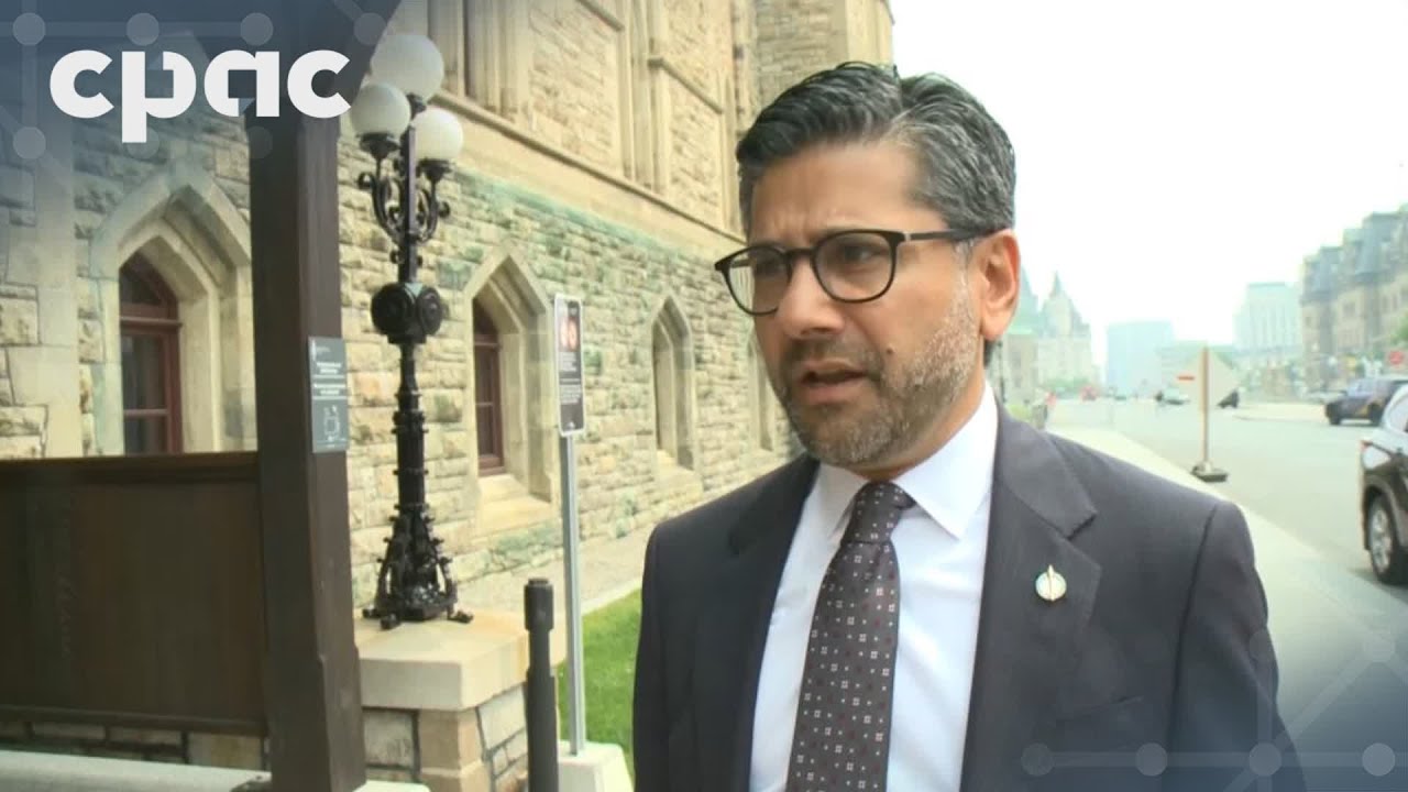 Liberal MPs Greg Fergus, Sophie Chatel, and Yasir Naqvi speak briefly with reporters as they enter the House of Commons for question period. They face questions on Prime Minister Mark Carney’s invitation to his Indian counterpart Narendra Modi to attend the G7 summit taking place in Alberta later this month.