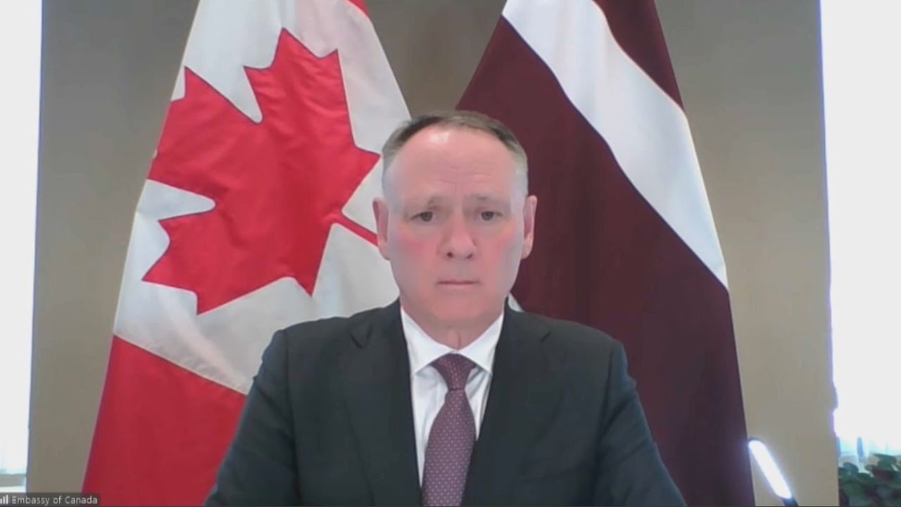 Defence Minister David McGuinty holds a media callback from Ādaži, Latvia, following a two-day visit to the country. During his trip, the minister met with Andris Sprūds, his Latvian counterpart, as well as Canadian Armed Forces personnel deployed in the region.