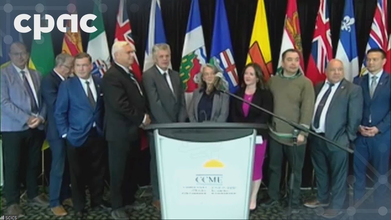 Canada’s federal, provincial, and territorial environment ministers speak with reporters in Yellowknife at the conclusion of their two-day meeting.