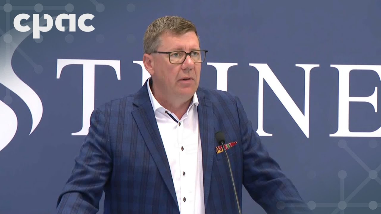 Saskatchewan Premier Scott Moe holds a news conference in Saskatoon to discuss interprovincial trade. Moe is calling on all Canadian premiers to join the New West Partnership Trade Agreement, a deal allowing the free flow of goods and services between signatory provinces.