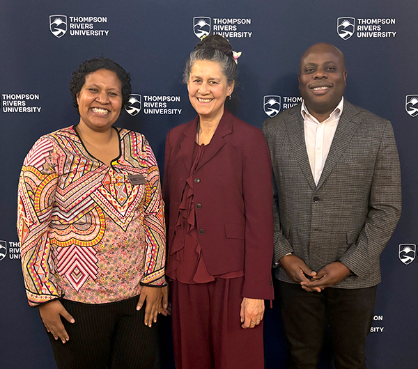 Keisha Morong, EDI manager in TRU’s Office of Equity, Diversity, Inclusion and Anti-Racism, with President Airini and Executive Director John Ariyo of the Charter Secretariat.