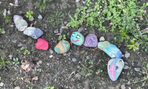 A very positive note is that we had many lovely interactions with people who walked by as we worked on the garden. Most of them were curious, encouraging, positive, and appreciative of what we were doing. The management of Visions Electronics, who allowed us the space and contributed to the irrigation repairs, are also pleased and supportive. The garden now has three rock “snakes” thanks to children participating in rock painting at one of the Pop-Up Community Centre events hosted by the BC Interior Community Foundation (BCICF) this July at the TNRD Library Building, in which TXNA also took part. One of our activities included tours around the block to the demo garden on Seymour. If you have not already seen the garden, watch for it as you drive or cycle or walk along the block.